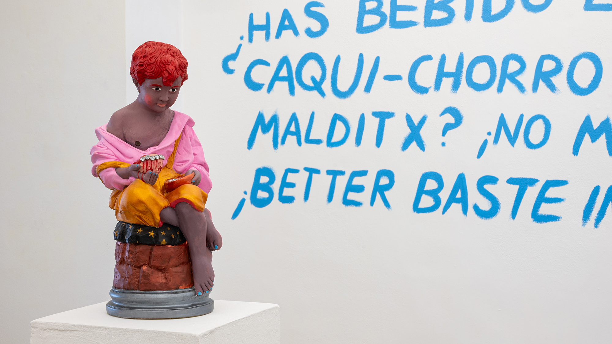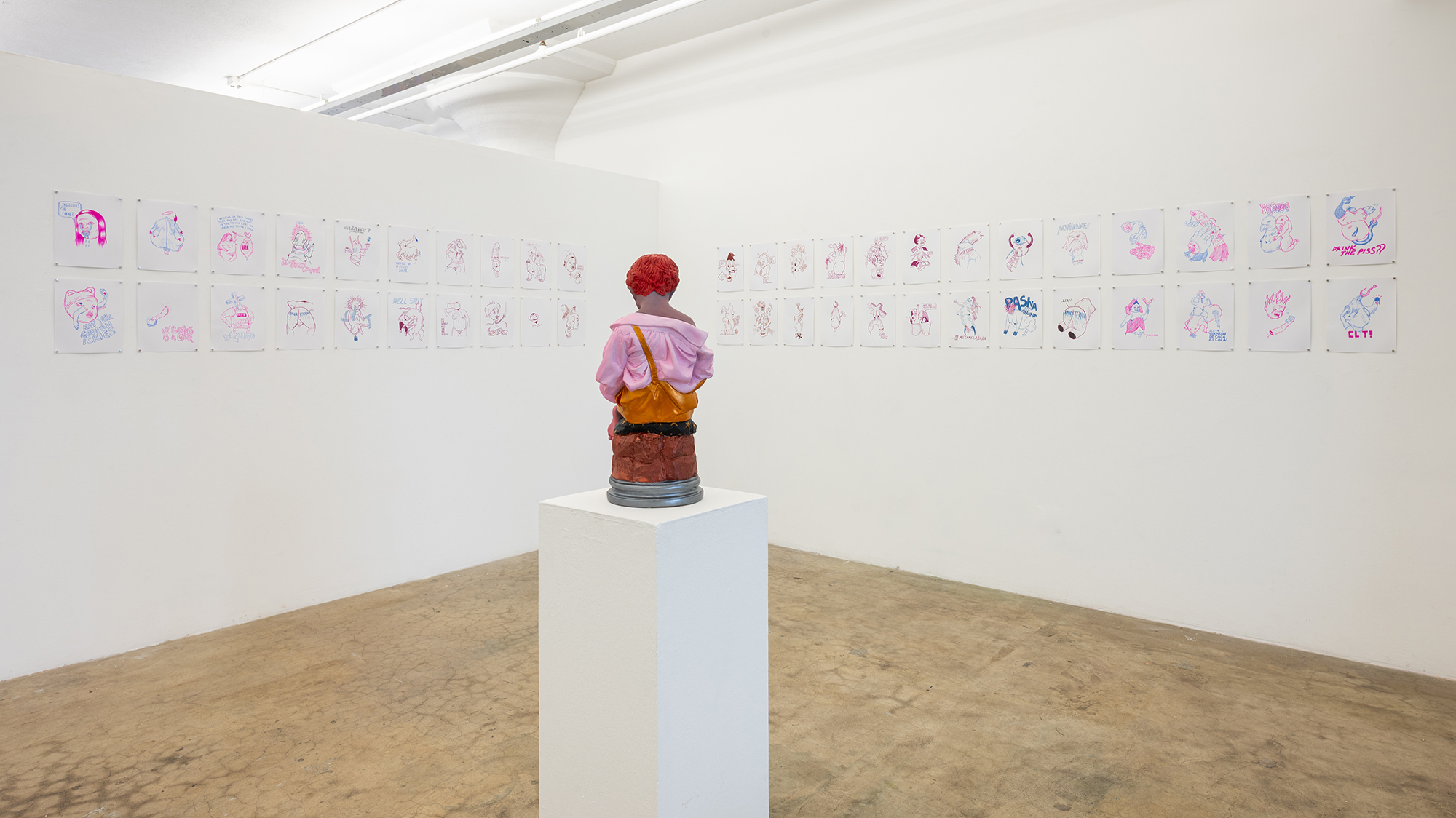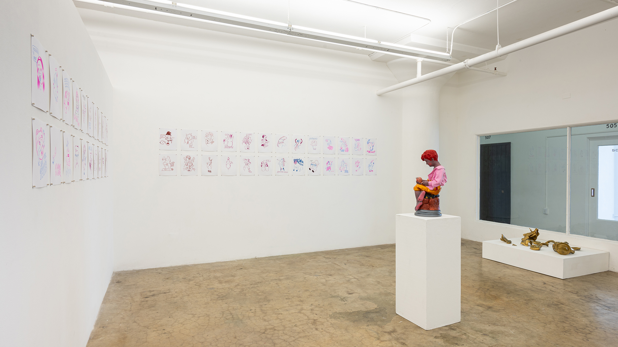 Monte Vista Projects is pleased to present Caca, the first U.S. solo exhibition of multidisciplinary artist Dorian Wood’s visual work. Caca emerges from Wood’s nightly ritual of documenting the world’s troubles and follies through ink-based illustrations that depict swirling genitalia, gender-absent bodies, distorted icons and coprophagic musings. Over the past 10 years Wood has amassed hundreds of these “disruptive self portraits.” Caca collects a selection of these illustrations, grouped into series by ink color, and will include a mural on the gallery’s north wall created by Wood specifically for the exhibition, keeping with the artist’s ongoing intent of “infecting” spaces.