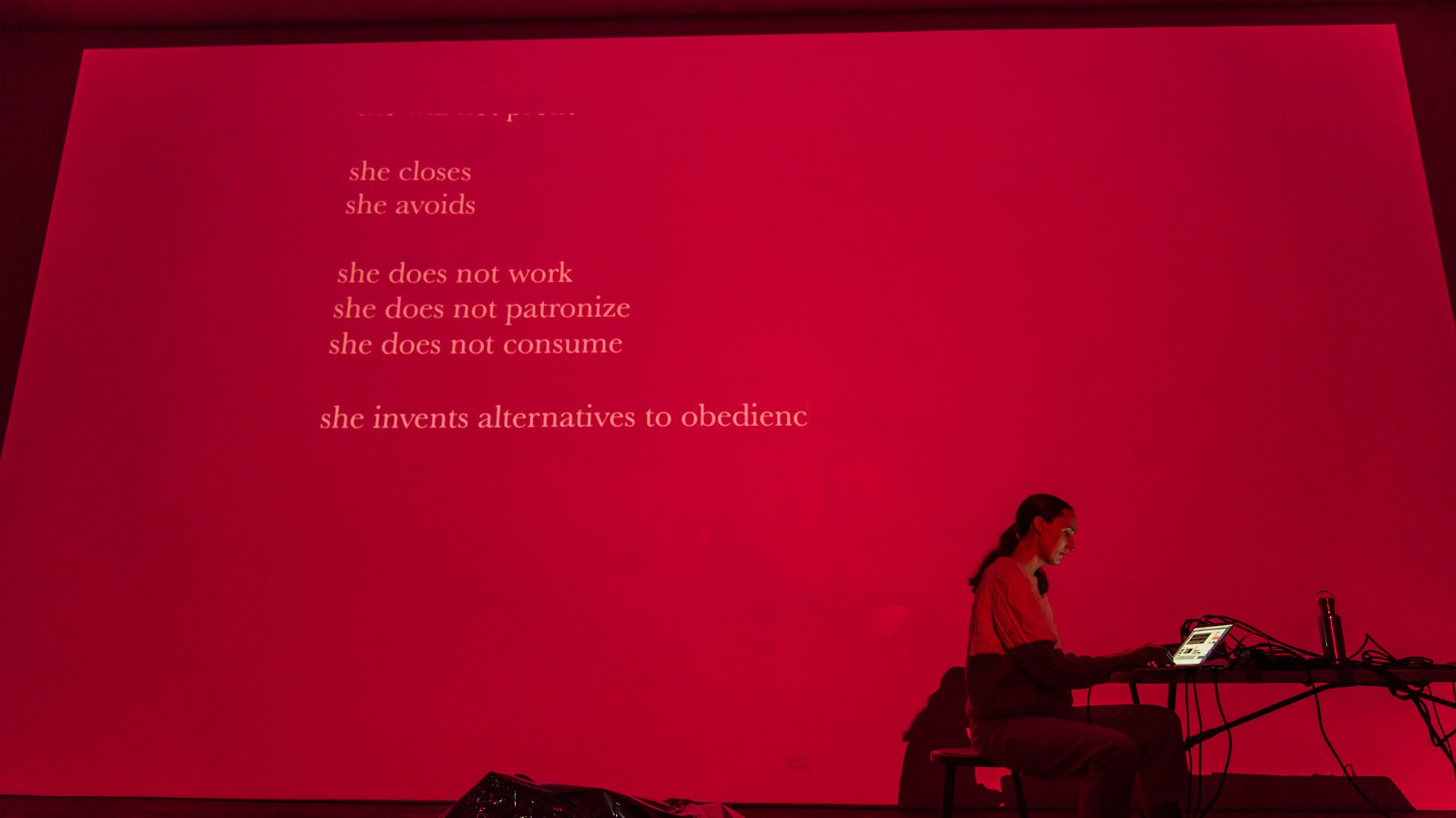 The exhibition’s closing will present performances by Rebecca Bruno, Sarah Rara, and Geneva Skeen. Rebecca Bruno will offer a choreographic response to Novak’s Repose.Heptaptych. A gestural run-on sentence performed in four orientations meditating on the relationship between movement, subjectivity, and repetition. Sarah Rara will present Separating the Air, a new performance which involves games of listening and learning between voice and computer at the boundary between music and speech. Each part is a device to punctuate silence, divide time, move the air. Geneva Skeen will present Pop Song, a temporal response to Novak’s drone work, and a cultural response to our times. In harmonizing with Novak’s loop – divided into 3-4 minute segments (the average acceptable length of a pop song) – Skeen’s Pop Song acknowledges that populist times call for populist measures, but refuses populist comfort, acceptance, and pale standards of beauty as means of resistance.