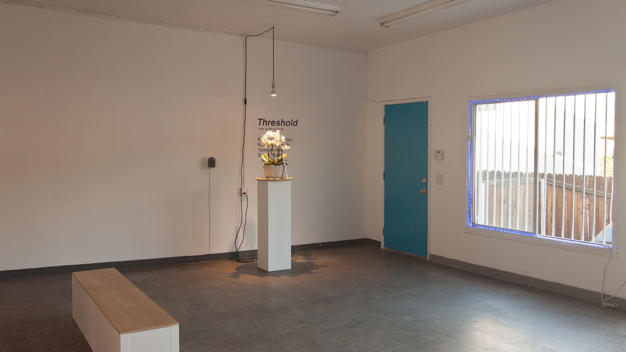 Threshold is an exhibition of four site-specific sound works by artists Richard Chartier, Robert Crouch, Yann Novak and Steve Roden. Each artist was given a recording of the ambient sounds of Studio Sereno’s project space and asked to create a work that interacted with the spaces unique indoor/outdoor qualities in some way. How they chose to interpret that interaction was left up to them.