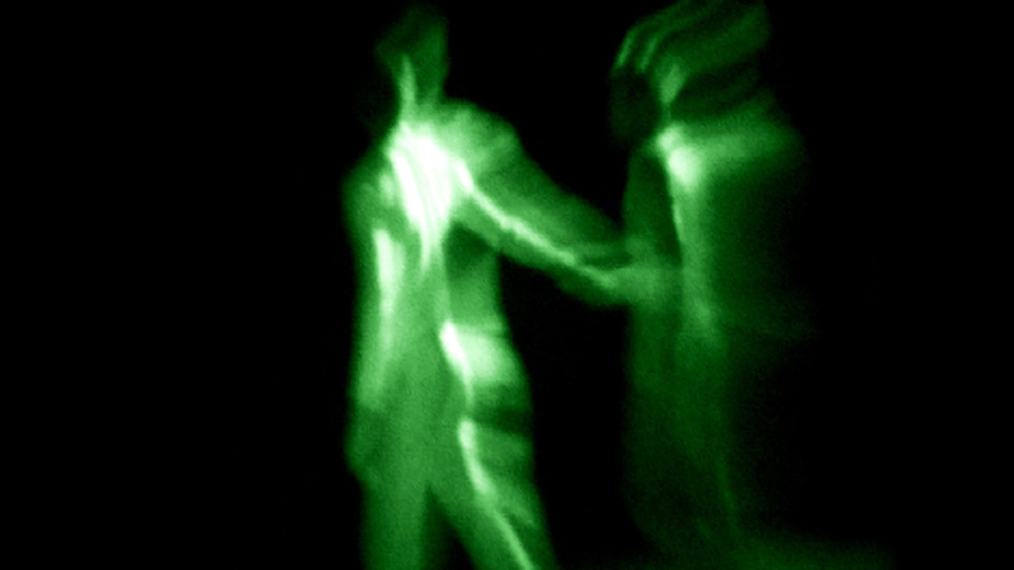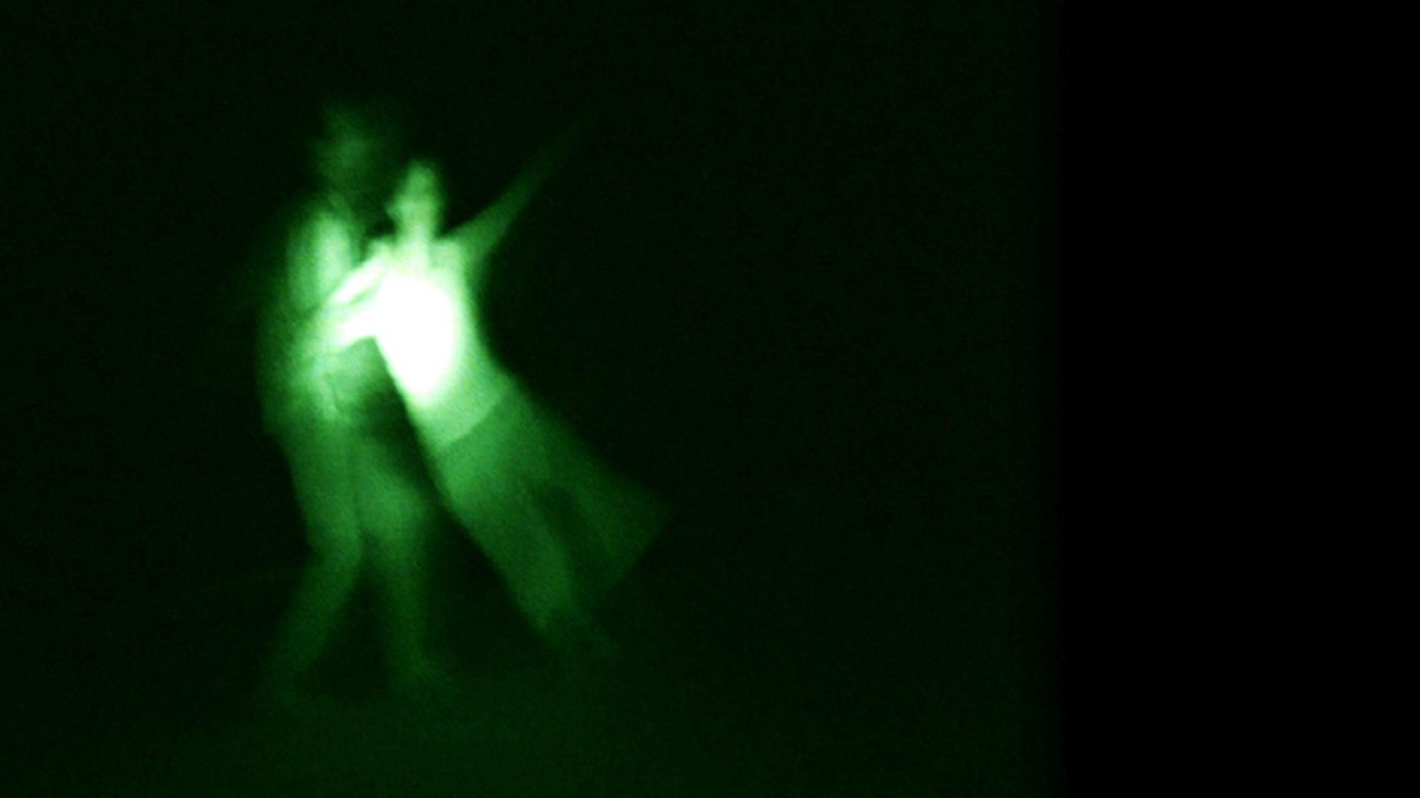 Crispin Spaeth returns to Western Bridge to re-imagine her 2006 dance work Dark Room as part of our spring exhibition Light in Darkness. This work for three dancers is presented in a space lit only in the infrared spectrum. The dancers perform sightlessly, seeking each other in the space with violent or searching gestures, then meeting for clinches or embraces. A small audience views the performance through night-vision scopes. Using this military technology, the audience is privileged with a view of the proceedings kept from the dancers, who are guided by hearing, touch, and memory.