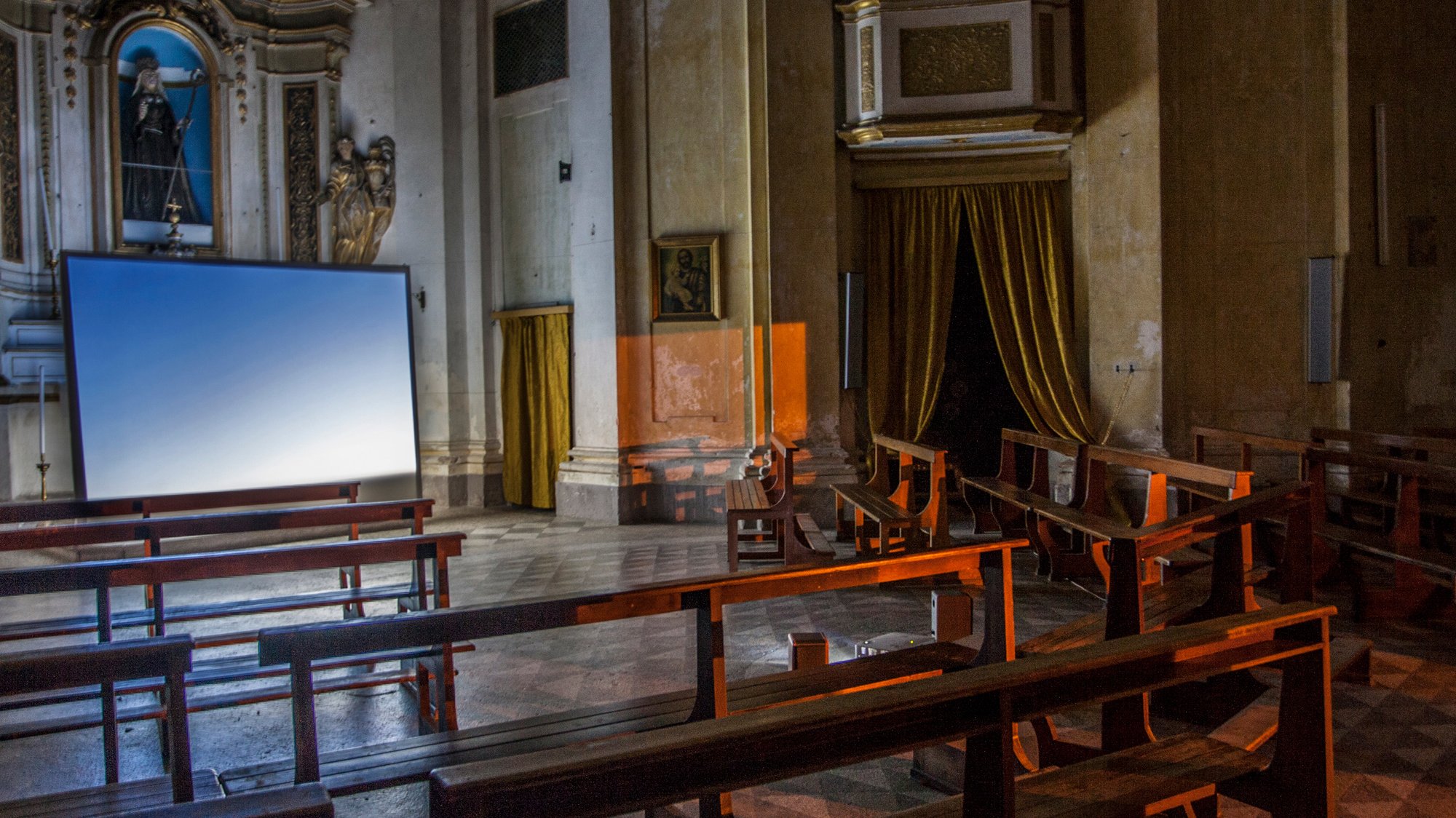Blue.Hour is presented here in a church with 2 channels of sound and paired with a large scale video projection. The piece is formed from photographs and sounds collected in Joshua Tree National Park in June 2010.