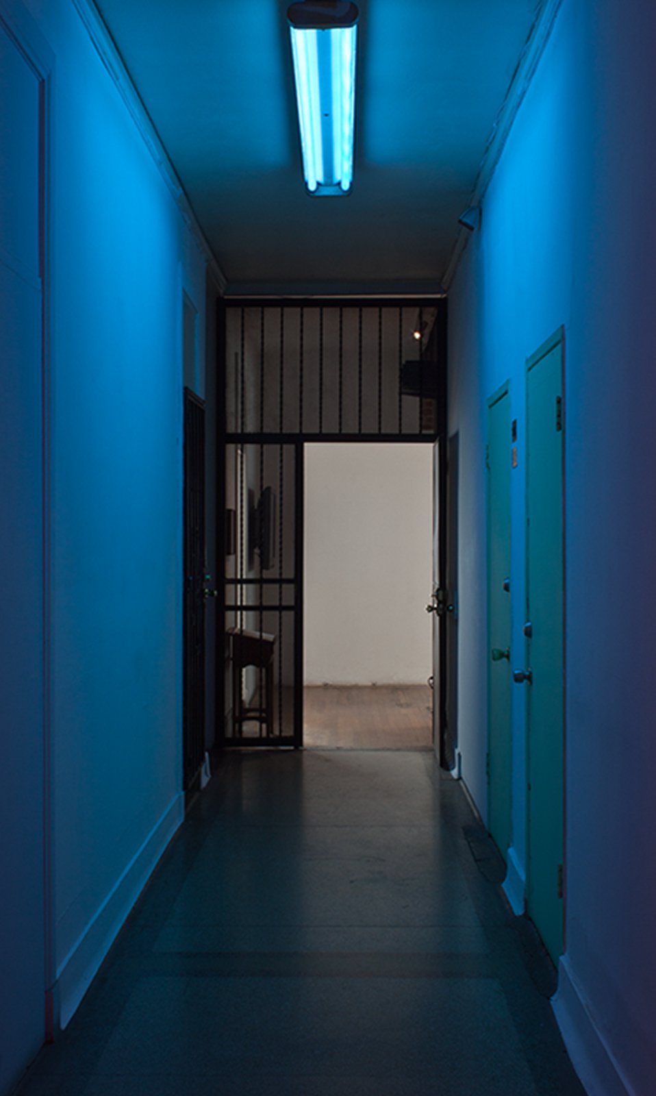 Blue.Shift incorporate filtered florescent light, synthesized sound and the unique sounds of the space as its primary materials. The sound is composed using the filtered field recording of the space paired with synthesized sounds created to enhance different harmonic profiles present in the recording and in the space.