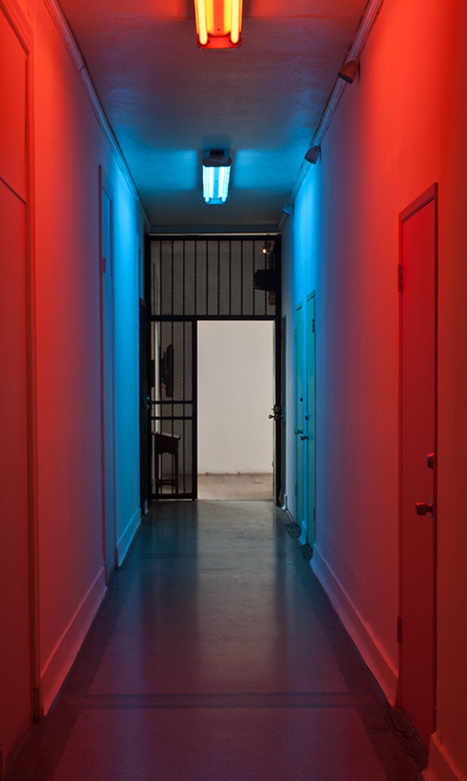 Doppler.Shift is an exhibition of two site specific sound and light works for the hallway leading to Commonwealth & Council. The two works, Red.Shift and Blue.Shift, each incorporate filtered florescent light, synthesized sound and the unique sounds of the space as their primary materials. The sound of each piece is composed using the filtered field recording of the space paired with synthesized sounds created to enhance different harmonic profiles present in the recording and in the space.