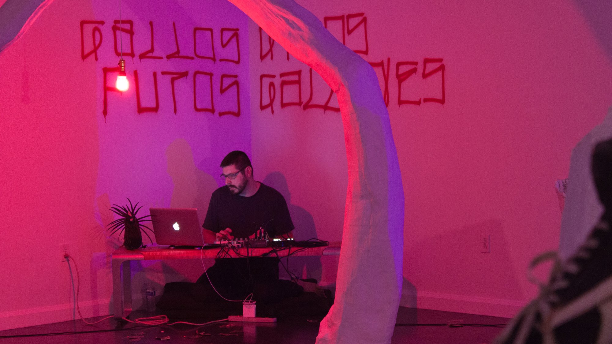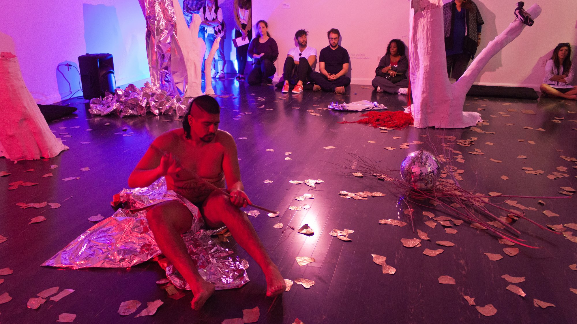We can’t take it all with us is a duratonal performance by Rafa Esparza and Yann Novak created to inhabit Esparza’s exhibition They spent their time doing nothing. they let intimacy fuse them at the Vincent Price Art Museum. The piece incorporates sounds collected in Elysian Park when Esparza took Novak on a guided tour of sites encountered by men seeking anonymous gay sexual encounters. Through the duration of the gallery hours Novak used these sounds in conjunction with synthesized sounds to pull the feeling and atmosphere of the park into the gallery.