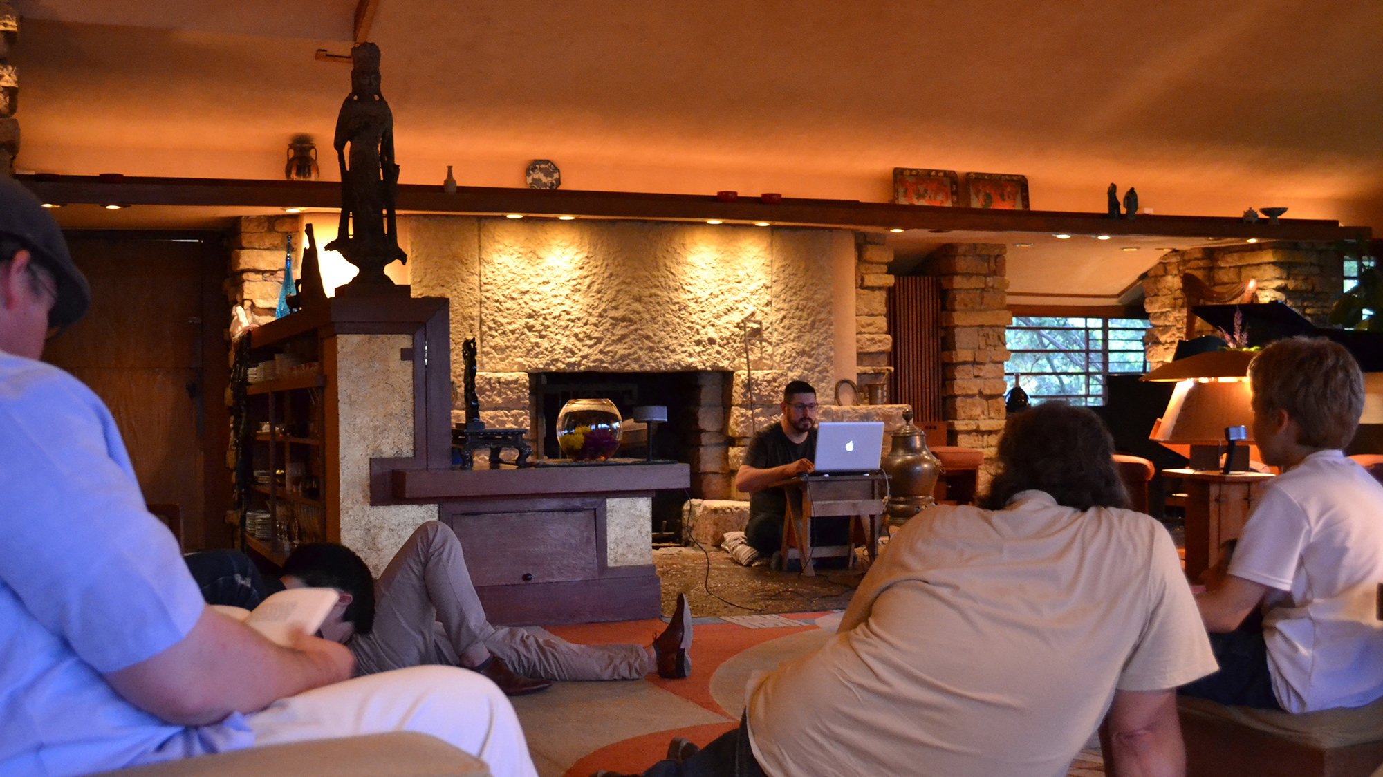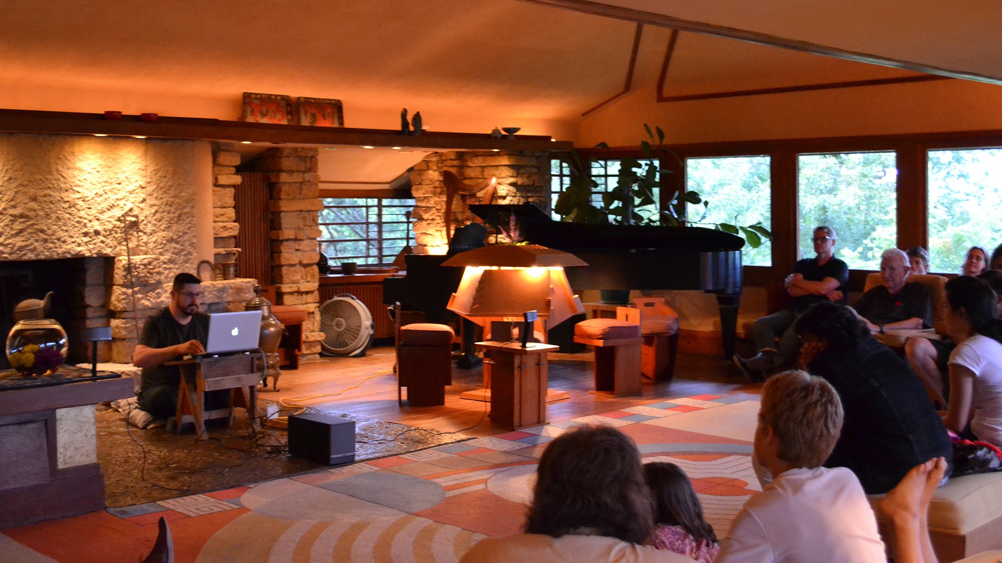 What A Man Does That He Has was a site-specific sound performance created at the Taliesin Artist Residency Program in Spring Green, WI. The performance incorporated sounds collected in and around the Hillside Studio/Dormitories and synthesized sounds created to echo the general atmosphere and energy of Taliesin. What A Man Does That He Has was performed in Frank Lloyd Wright’s living room at Taliesin.